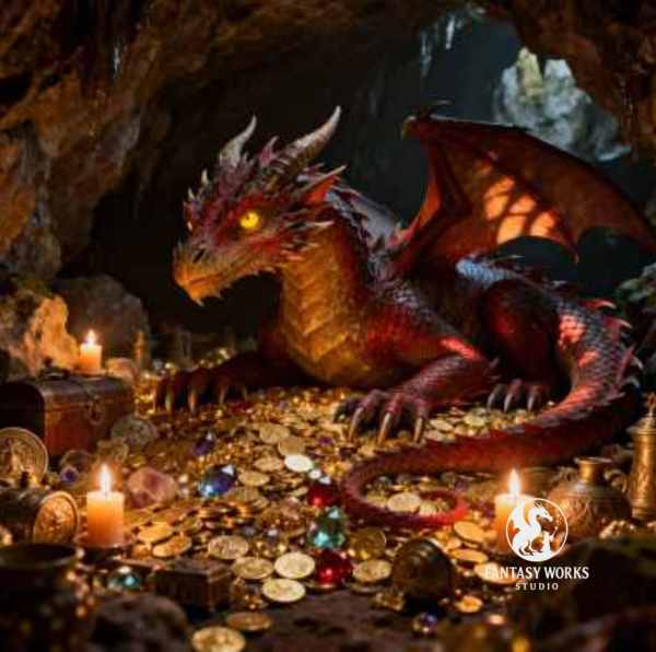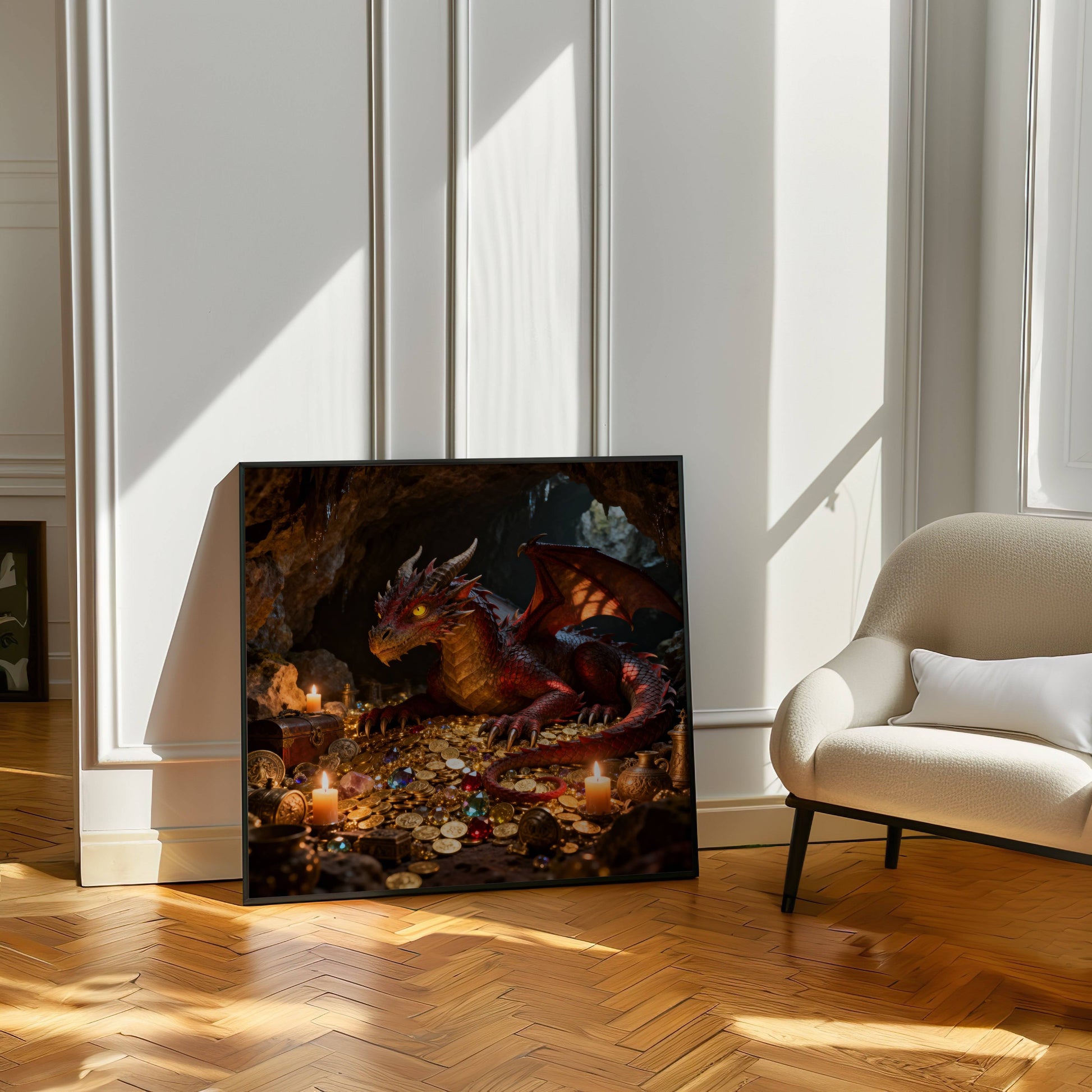 Epic dragon and treasure, capture the imagination with this original dragon wall art downloadable dragon poster