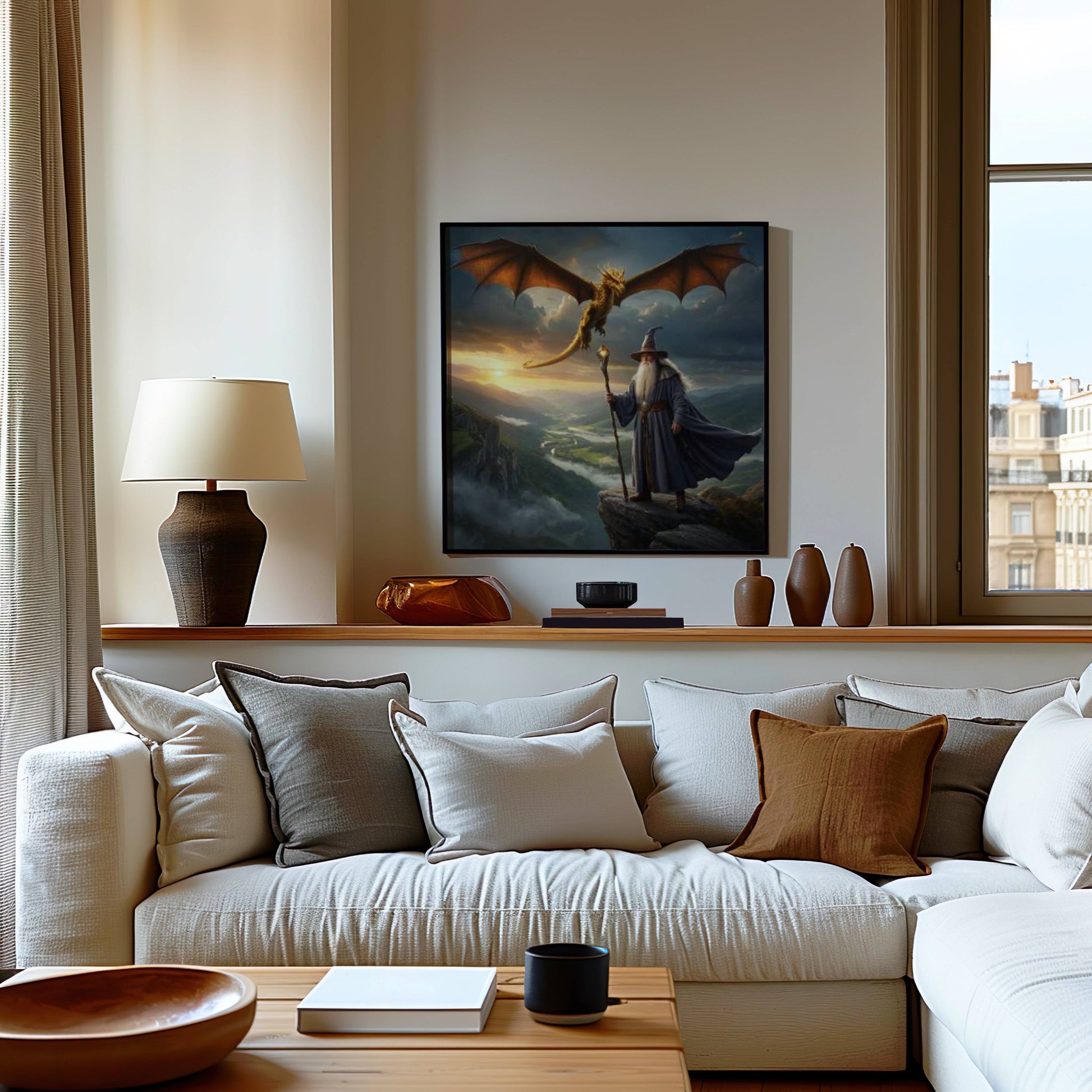 Dragon and Wizard | Digital Download | Original Fantasy Wall Art | Epic Fantasy Digital