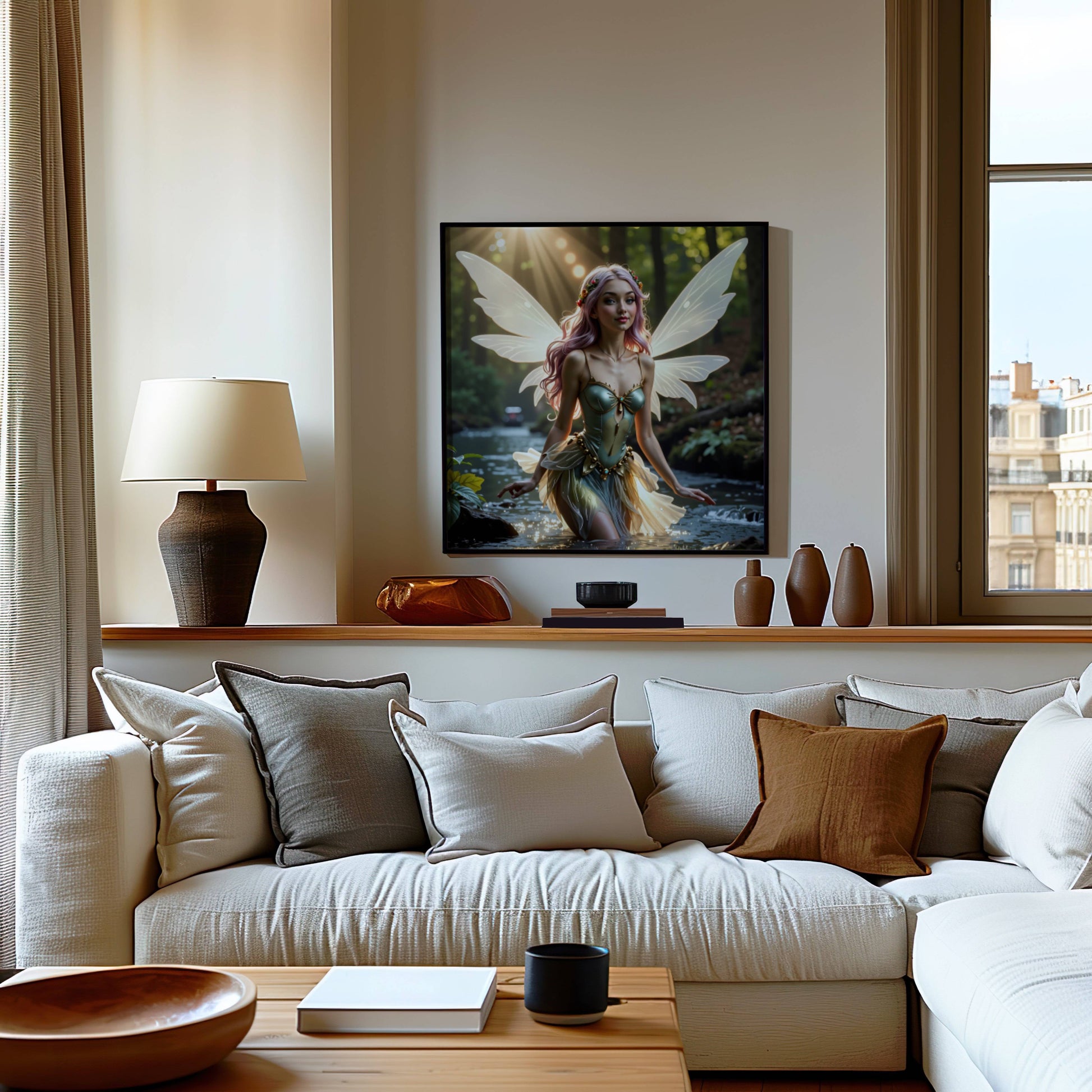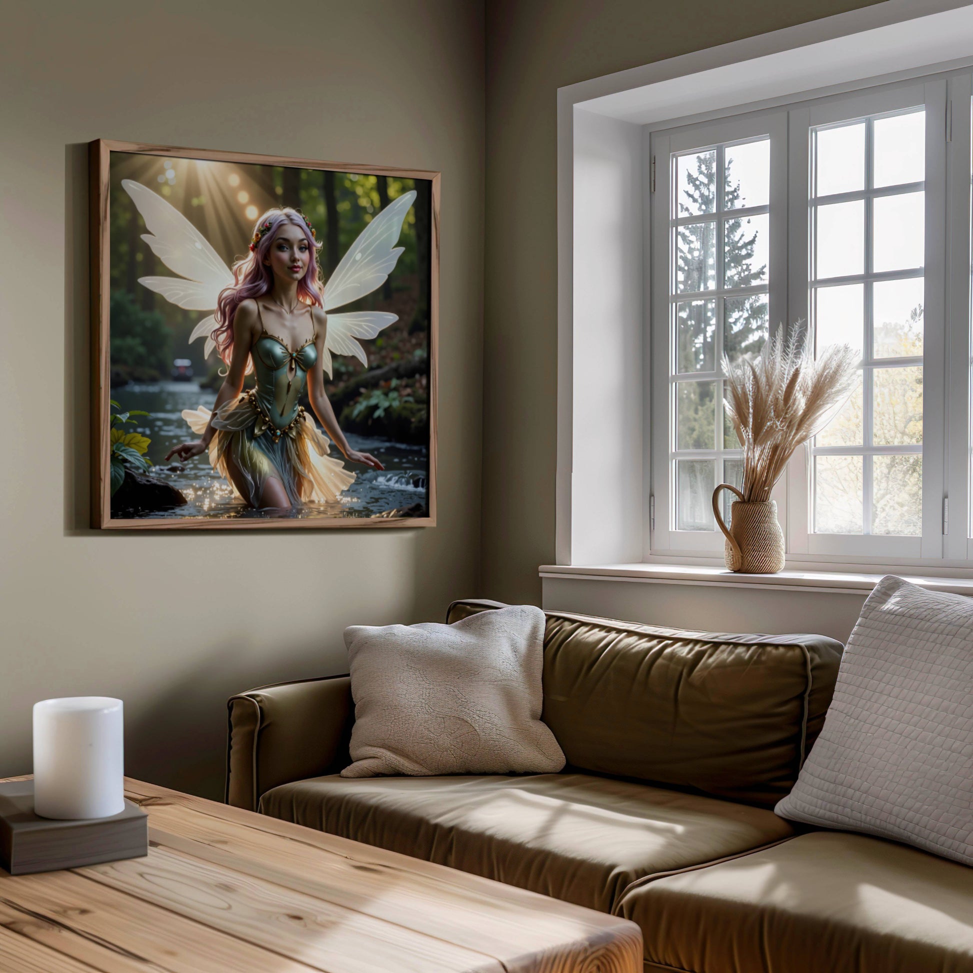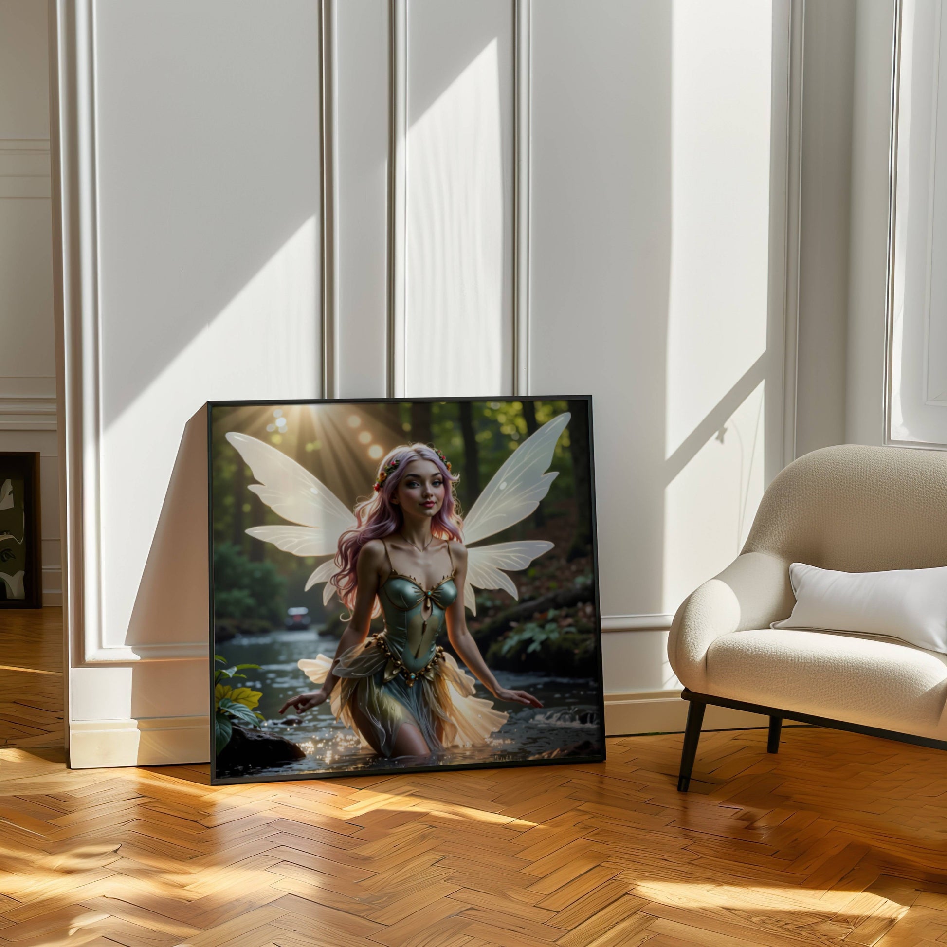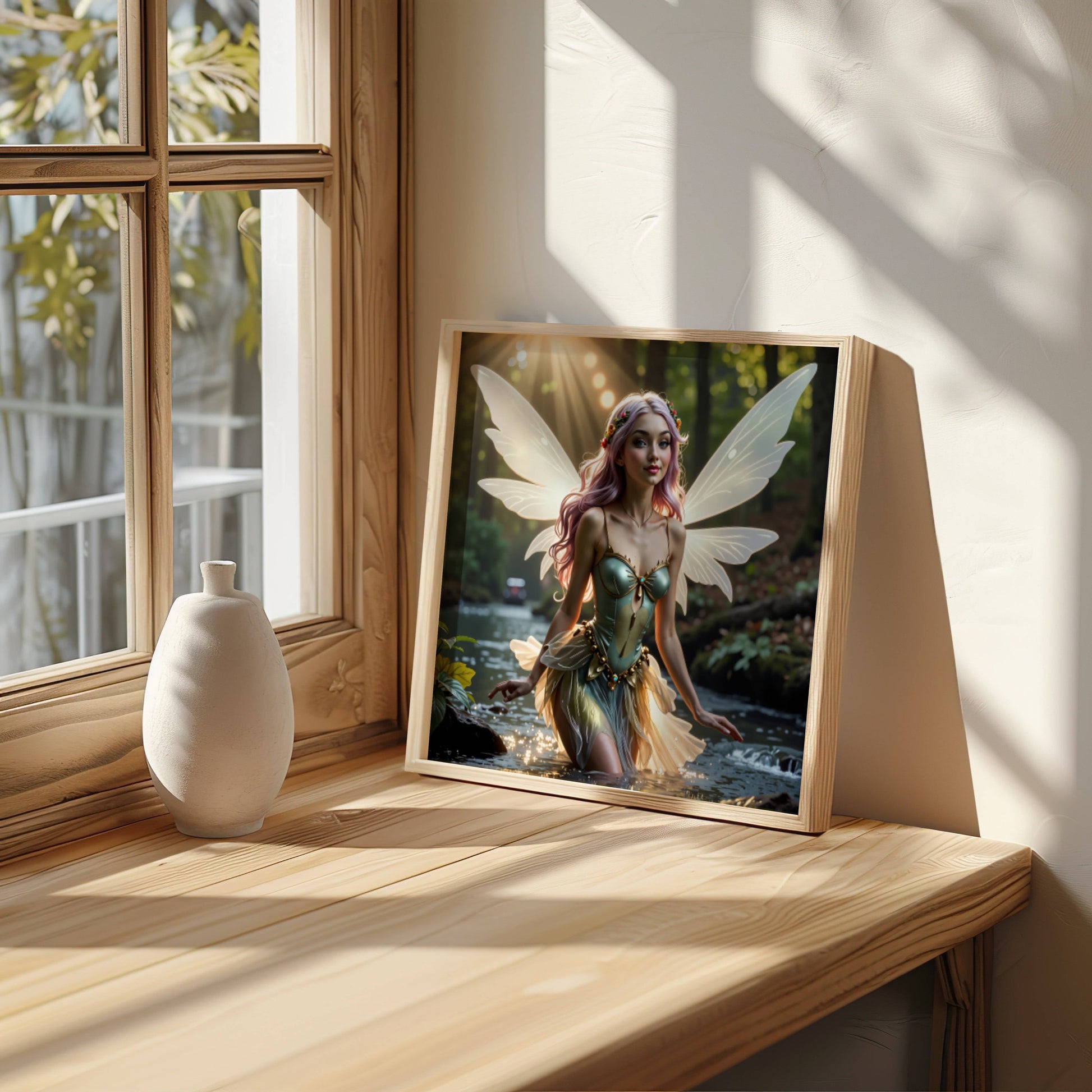 Magical Fairy And River Original Scene – fantasy printable wall art poster instant digital download for home decor.