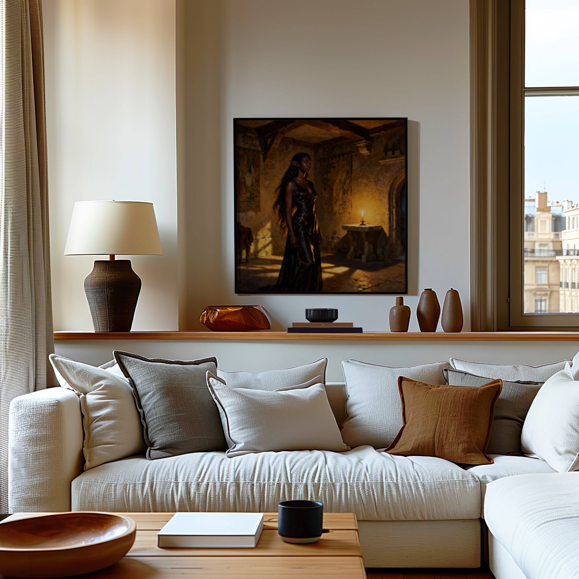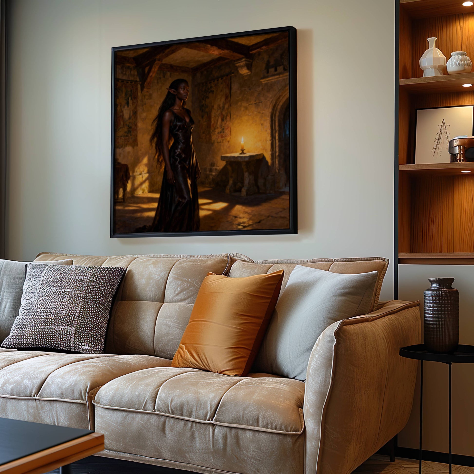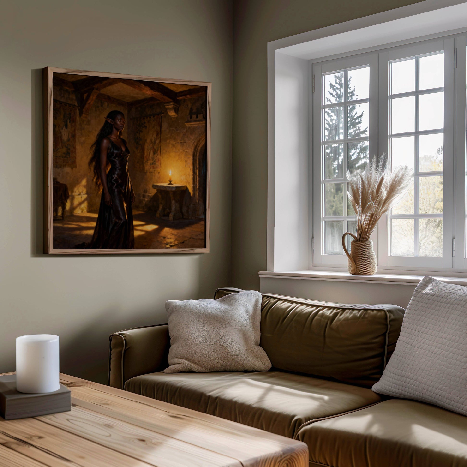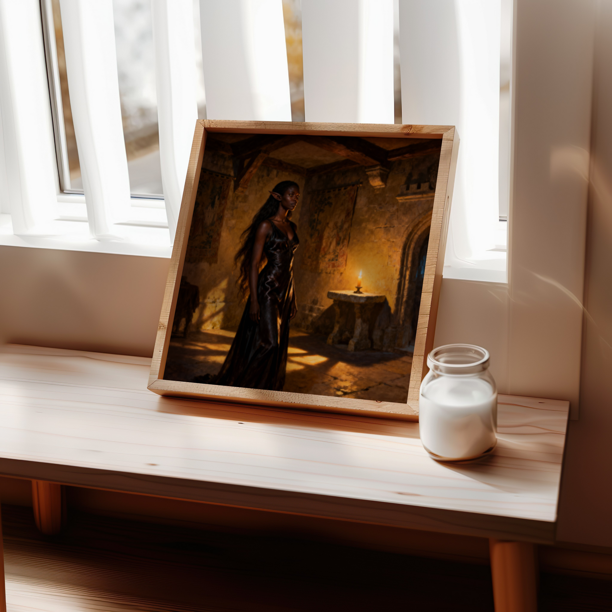 High elf waiting to see the elf council in a old castle building , original wall art print download