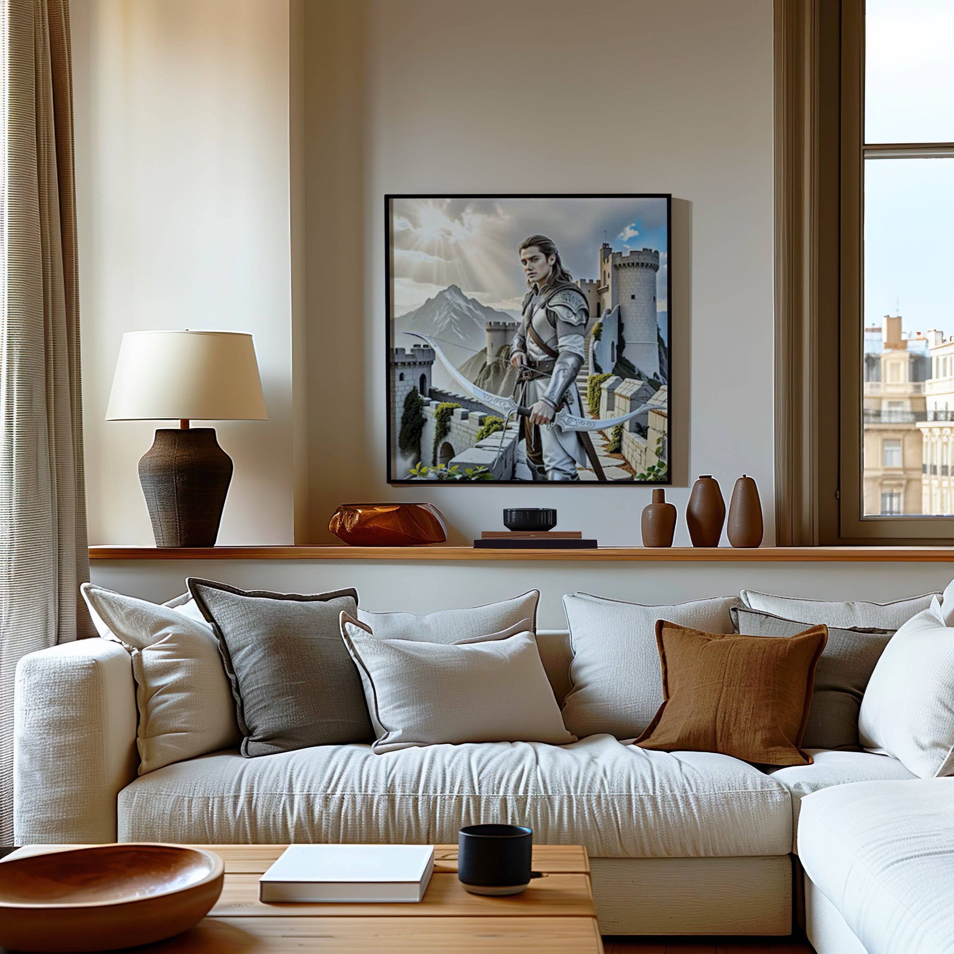 Warrior Archer Original Printable Wall Art | Fantasy Digital Download | Medieval Battlements Scene Home Decor
